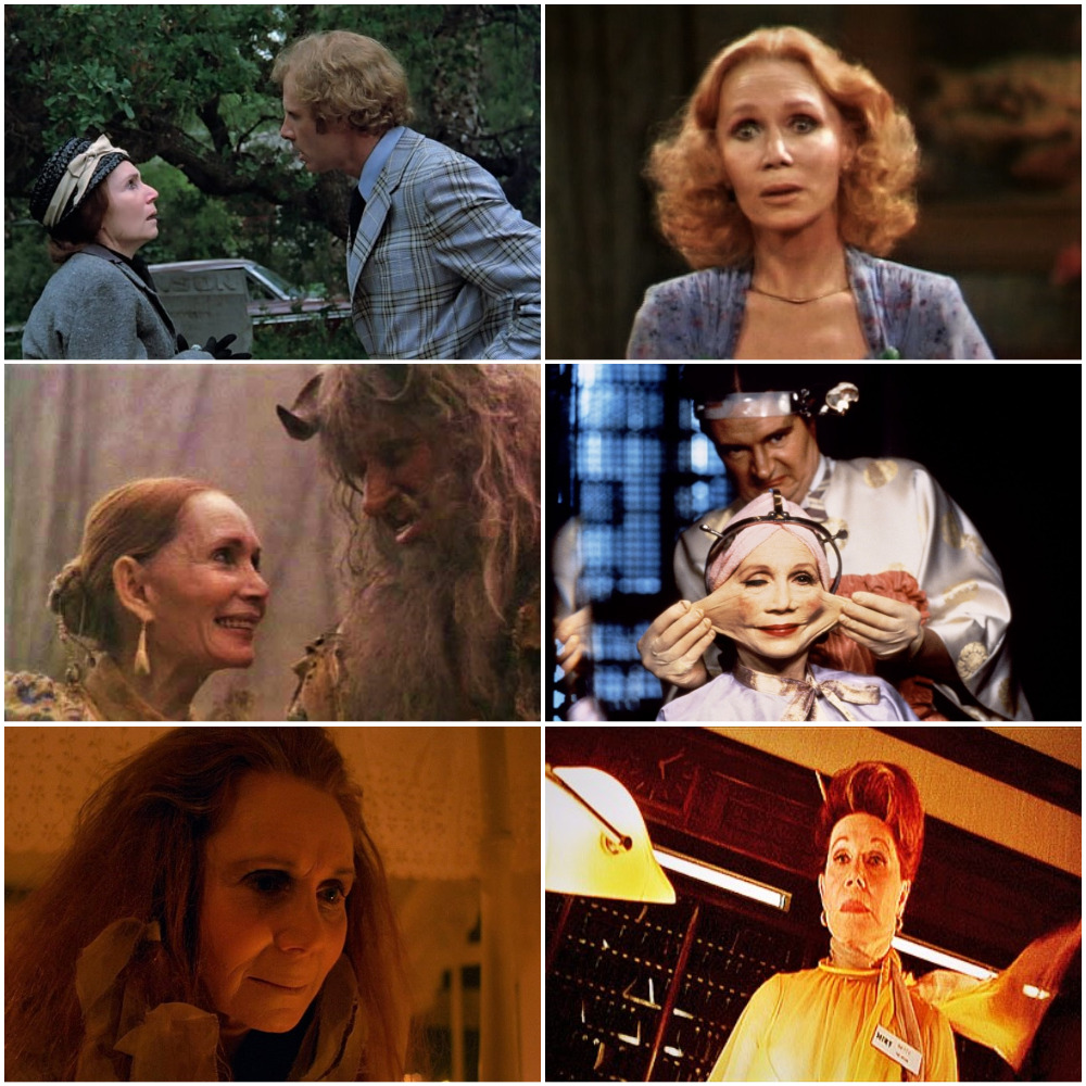 Here Katherine Helmond is pictured in Hitchcock’s endearing comedy-thriller Family Plot (1976); In her iconic TV role as the matriarch on Soap (1977-1981); As Mrs. Ogre in Terry Gilliam’s wild ride Time Bandits (1981); In her iconic face-stretching role in Terry Gilliam’s outrageous Brazil (1985); As ghost lady in Lady in White (1988); As the hotel clerk in Fear and Loathing in Las Vegas (1998). One of those familiar faces, obscure film fans might know her as a racist bitty in The Autobiography of Miss Jane Pittman (1974), a podunk mom to Ron Howard inn the eco-horror flick Locusts (1974), as Lizzie’s sister in The Legend of Lizzie Borden (1975), and as a mentally disturbed industrialist’s wife in the obscure ‘80s gem Shadey (1987). Shadey is why I love her as I do—even despite that other TV show I won’t mention (Katherine Helmond was the boss at any rate). This post is from my website Quirky Cinema.